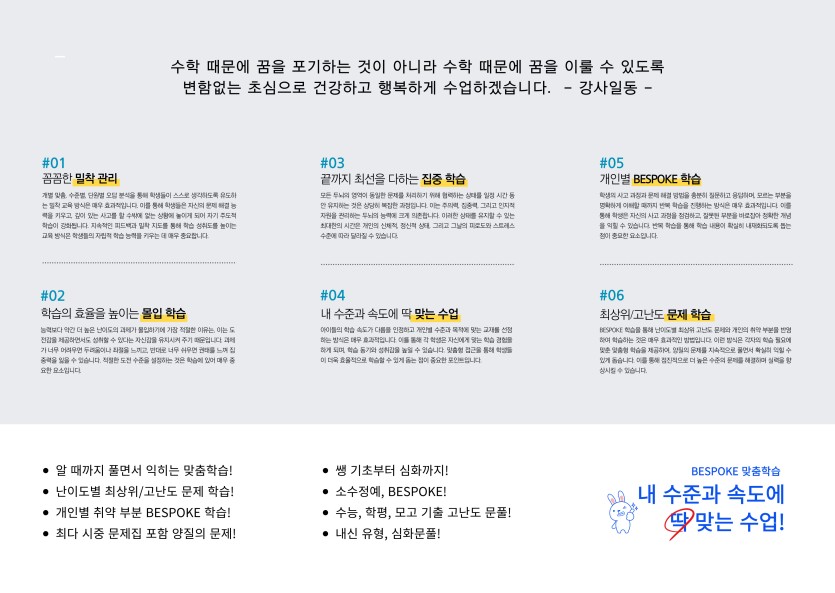 '이상수학'학원은 무리한 선행을 강요하기 보다는 내신과 수능에 집중하며 학생의 준비정도와 학습능력에 따라 개별 맞춤학습과 꼼꼼한 밀착 관리가 철저하게 이루어지고 있는 학원입니다.